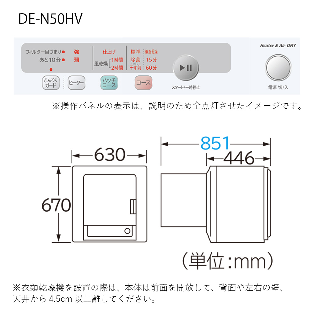 | 商品名 | 衣類乾燥機 ピュアホワイト DE-N50HV-W [乾燥容量5.0kg /電気式(50Hz/60Hz共用)] |