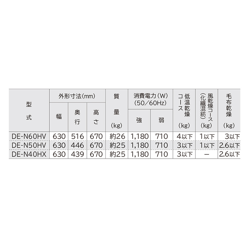 | 乾燥方式 | 電気式(50Hz/60Hz共用) |