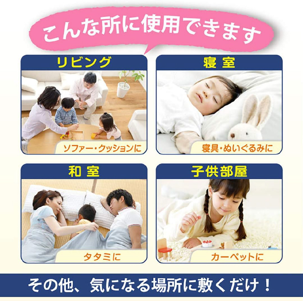 ・シーツなどお洗濯するものは、お洗濯で2〜3回程度、タタミやカーペットなら約1ヶ月効果が持続します。