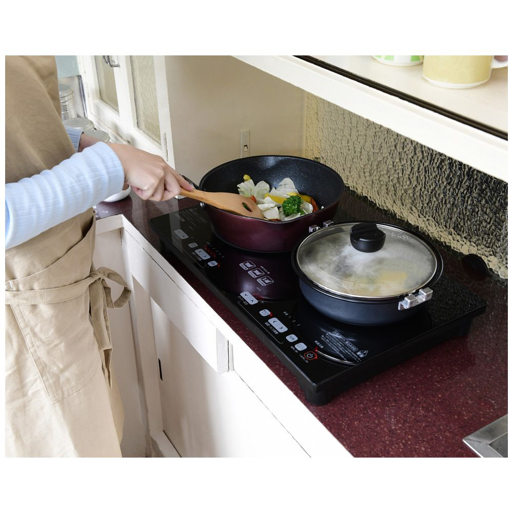 スペースが限られたキッチンにも置ける!横幅約52cmのコンパクトな2口IH調理器。