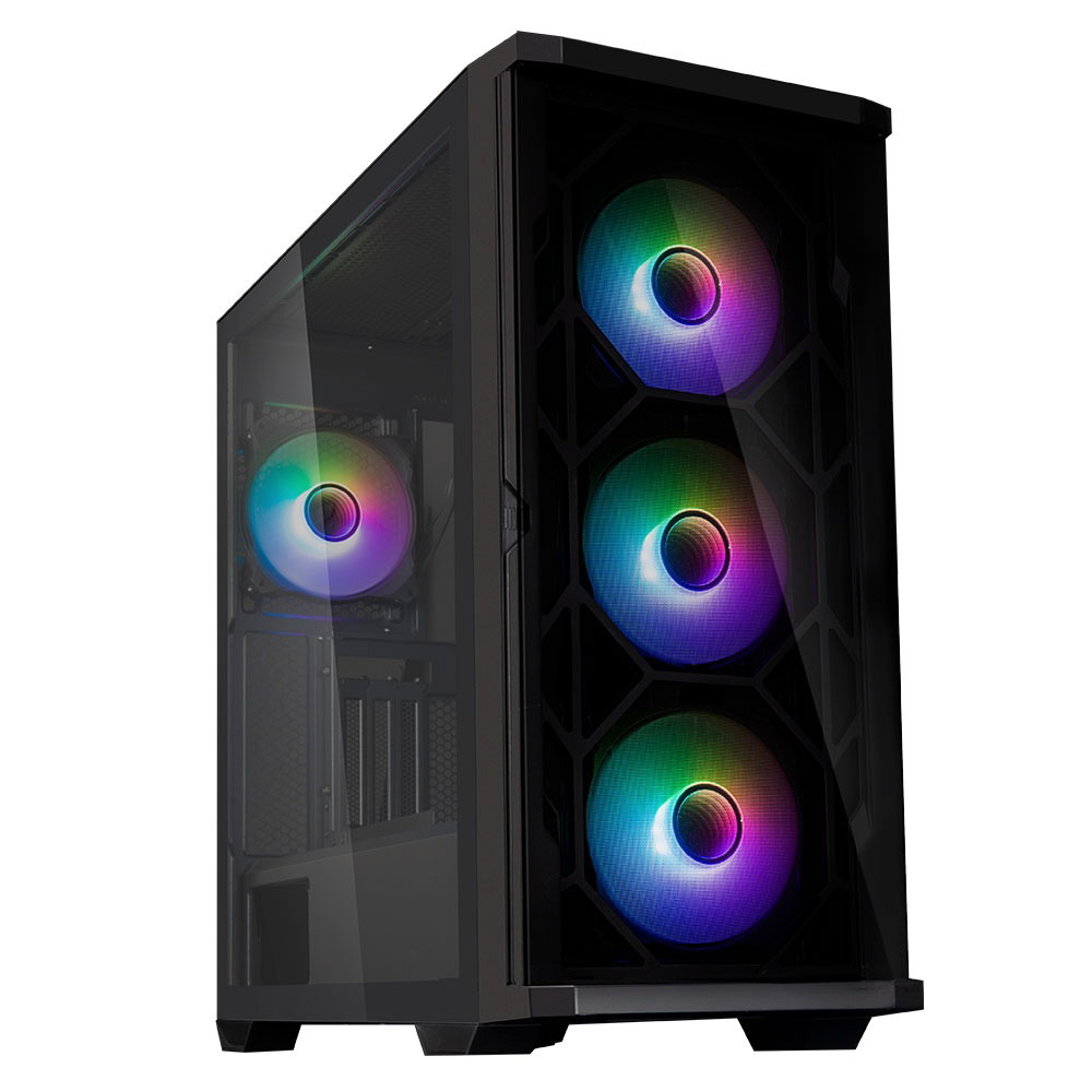 メッシュと強化ガラス、2種類のフロントパネルを付属。冷却性能と拡張性に優れたミドルタワー型PCケース