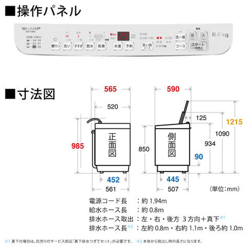 商品名 縦型洗濯乾燥機 シルバー系 ES-TX6G-S [洗濯6.5kg /乾燥3.5kg /ヒーター乾燥(排気タイプ) /上開き]
