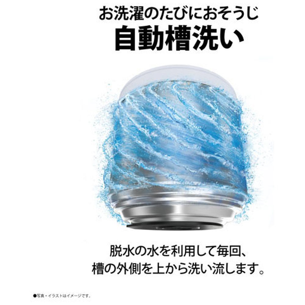 洗濯槽まるごと清潔、洗濯物の黒カビ付着を抑える穴なし