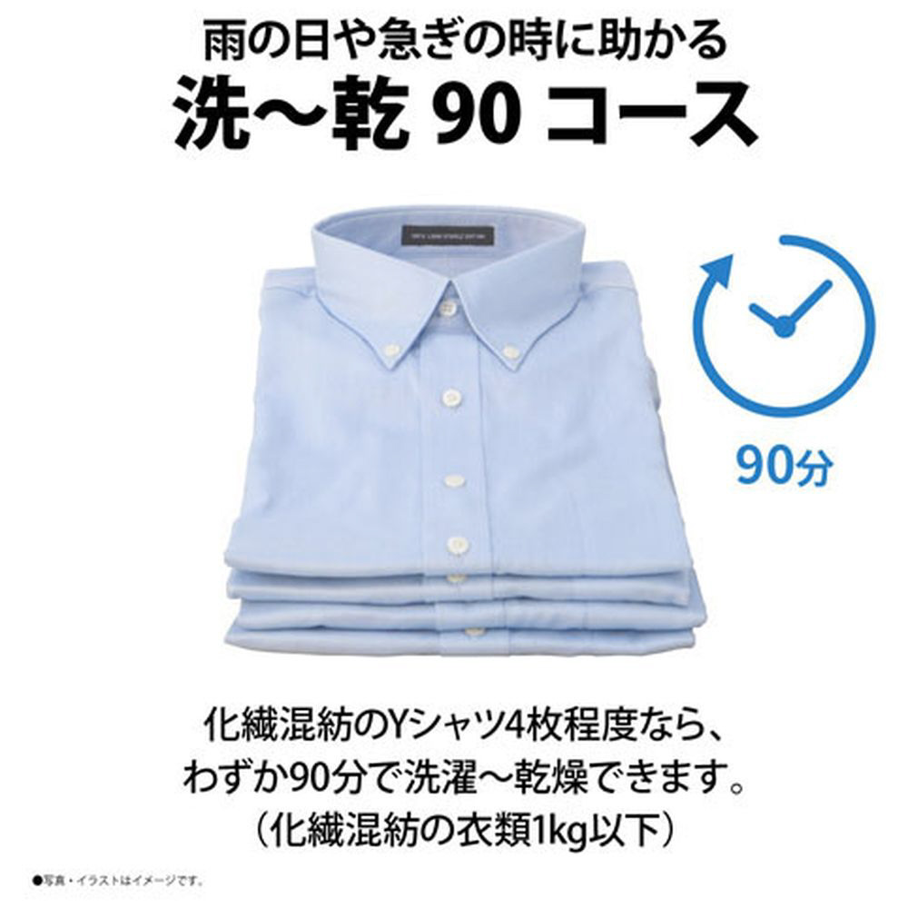 少量の洗濯物をすばやく洗濯・乾燥90分で仕上げる