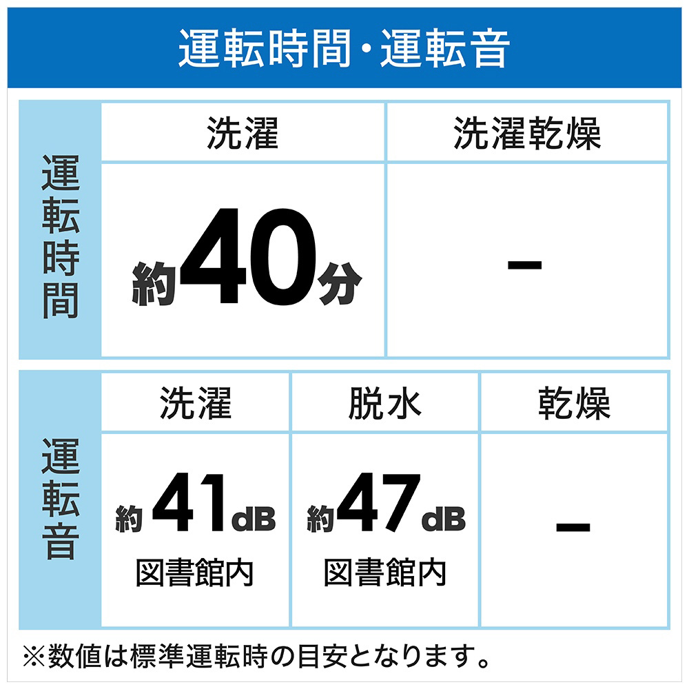 | 運転時間[洗濯時] | 最短14分、標準40分 |