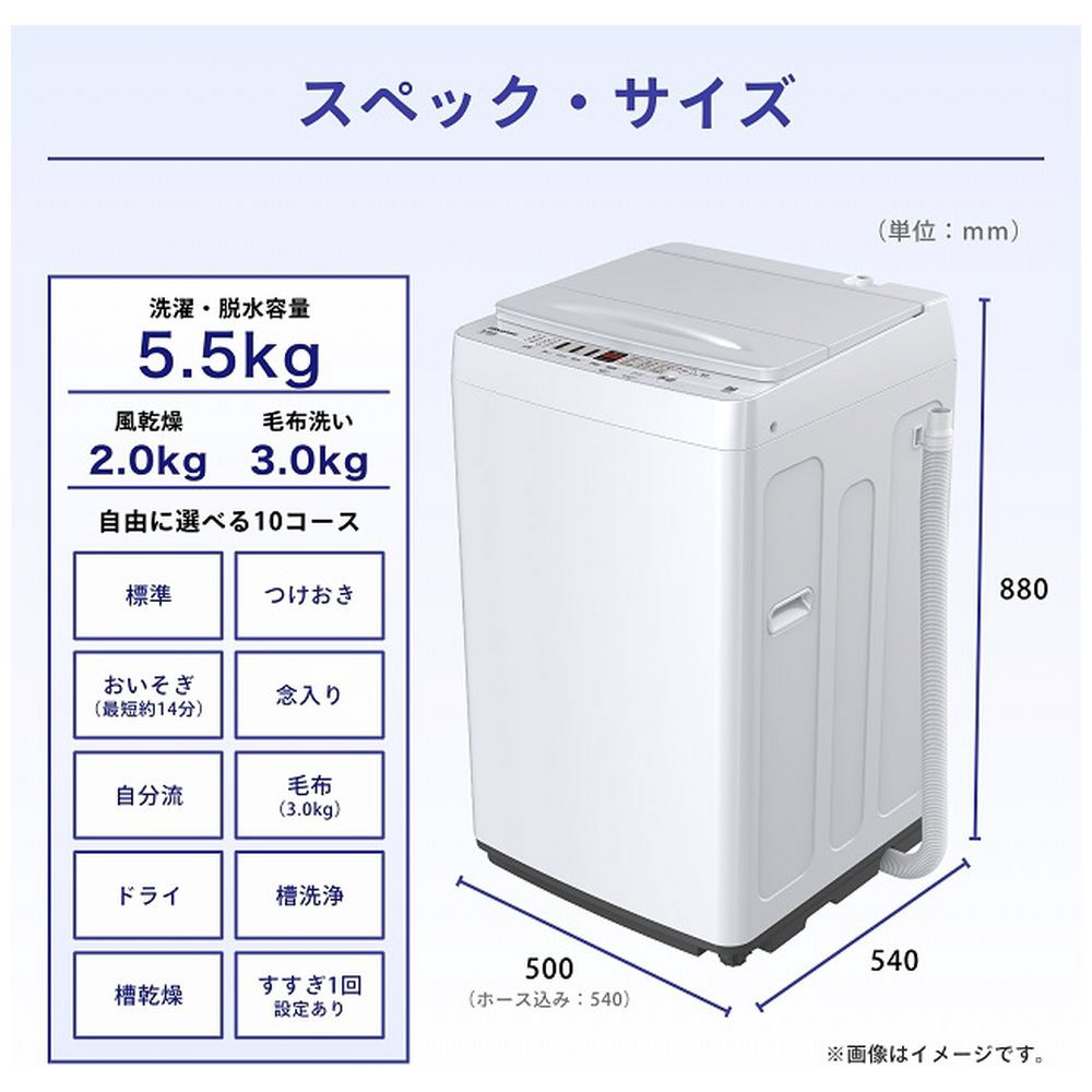| 商品名 | 全自動洗濯機 ホワイト HW-T55H [洗濯5.5kg /簡易乾燥(送風機能) /上開き] |