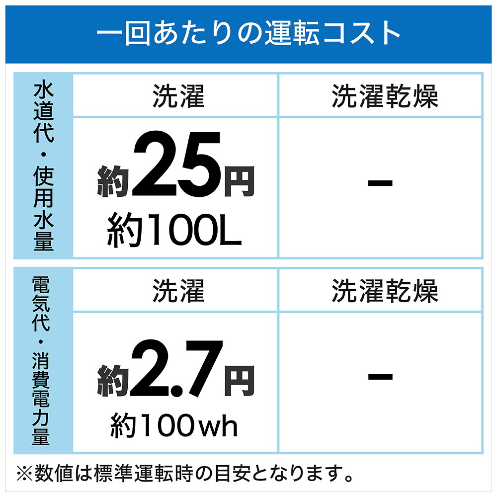 | 運転時間[洗濯時] | 最短14分、標準40分 |