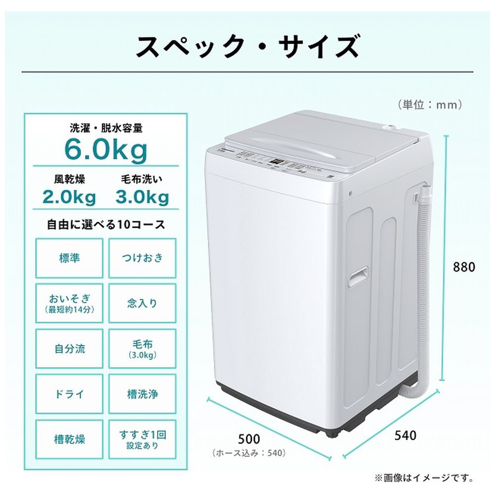 【激流洗浄】4.5kgクラスと同じ幅のスリムでしっかり洗えて衣服に優しい、余裕の6.0kgコンパクト洗濯機。