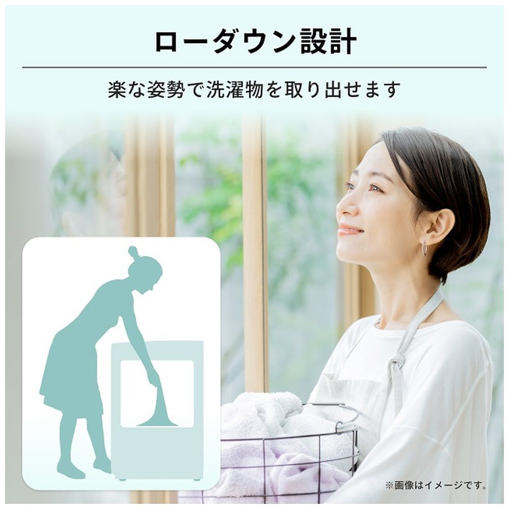 洗濯機の高さを従来の洗濯機よりも更に低く抑えたことで、ステンレス洗濯槽の底まで手が届きやすく、より洗濯物を取り出しやすくなりました。