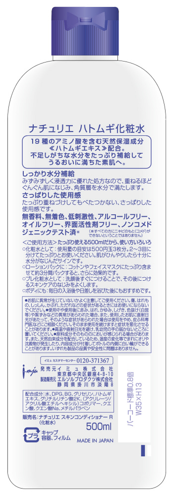 | 商品名 | naturie(ナチュリエ)ハトムギ化粧水(スキンコンディショナー R)500mL |