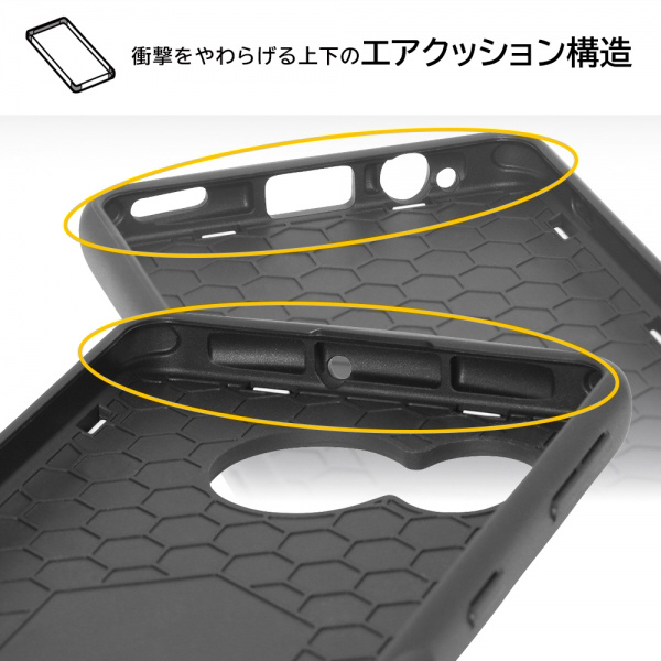 ケース内側は衝撃から端末を護るハニカム構造。画面を下向きに置いても傷が付きにくい。