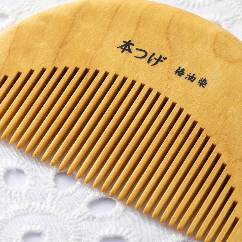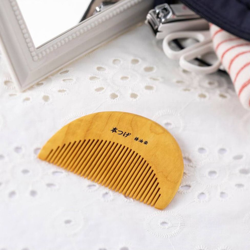 天然素材のつげから丁寧に作られ、椿油仕上げで髪にやさしい半月形のつげ櫛。半月形はコンパクトなのでメイクポーチ、バッグなどに入れて持ち歩きにも。静電気を抑え髪通りを滑らかにすることで、枝毛、切れ毛を防ぐ。