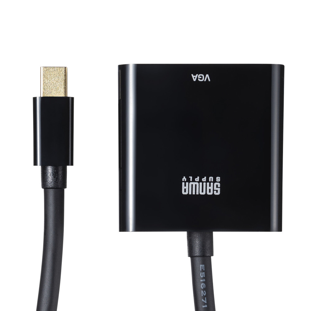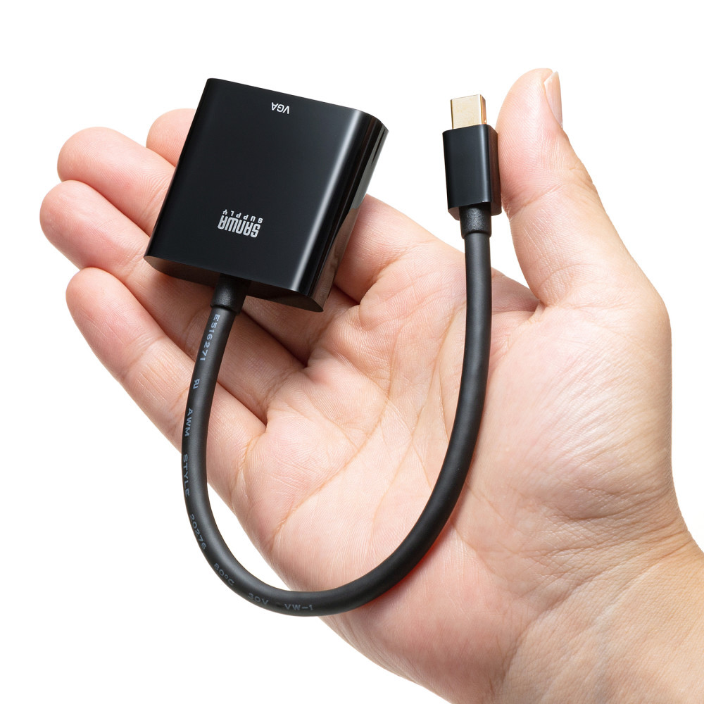 Mini DisplayPortコネクタからのデジタル映像出力をVGAコネクタ(ミニD-sub(HD)15pin)に変換できるMini DisplayPort-VGA変換アダプタ。
