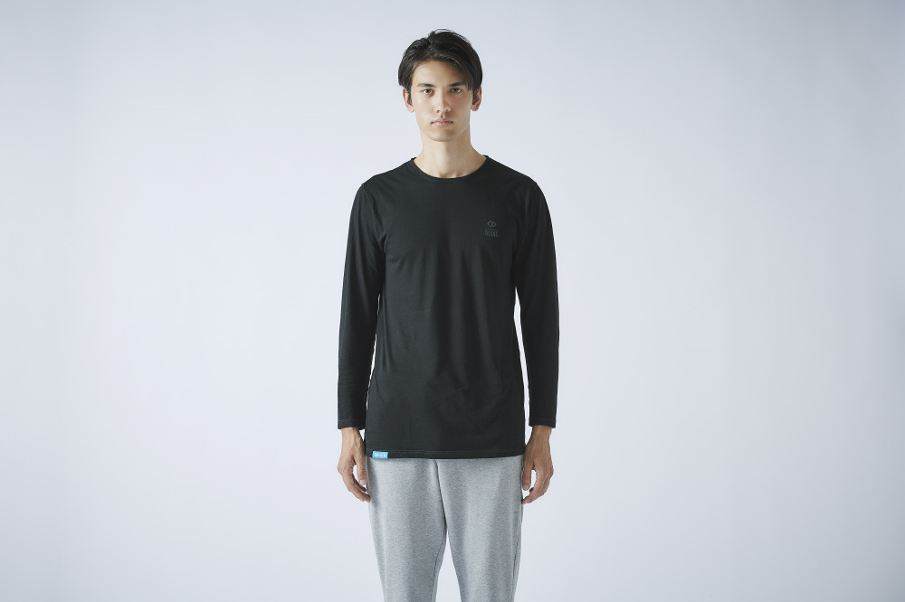 衿から肩の縫い目はテープで包み、アームホール、脇、袖は外縫い仕様で、縫い代が肌に触れるストレスを軽減。