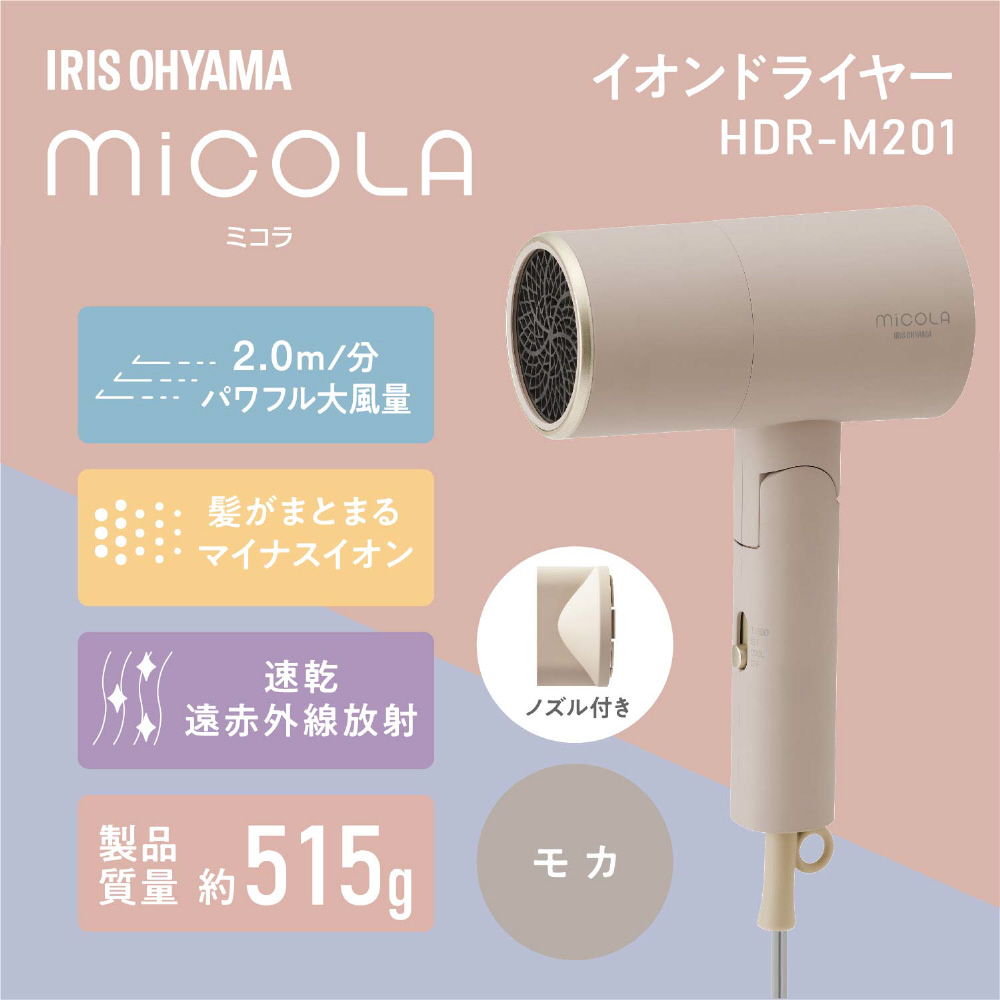 商品名 ヘアードライヤー イオンドライヤー 遠赤外線 micola(ミコラ) モカ HDR-M201-T