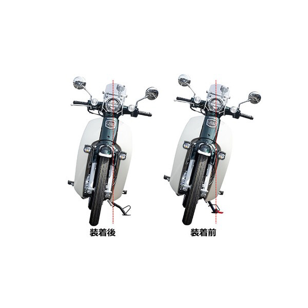 本製品を装着することで、サイドスタンドでの駐輪姿勢が純正スタンドと比べ大幅に安定いたします。