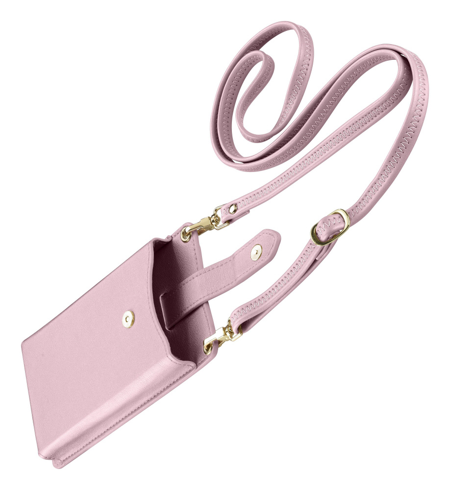 16.2cm×7.8cm以内のスマートフォンに対応し、ショルダーストラップは長さ調節が可能です。