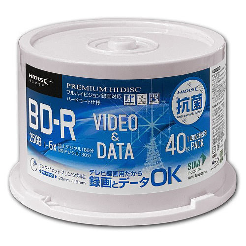 録画/データ用BD-R スピンドルケース 40枚入り HDBDR130RP40NBA [25GB /インクジェットプリンター対応]