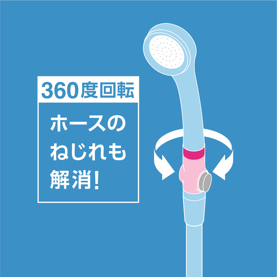 ・アタッチメント部が360°回転するのでボタンの位置が自由に調整でき、ホースのねじれ防止にもなります。