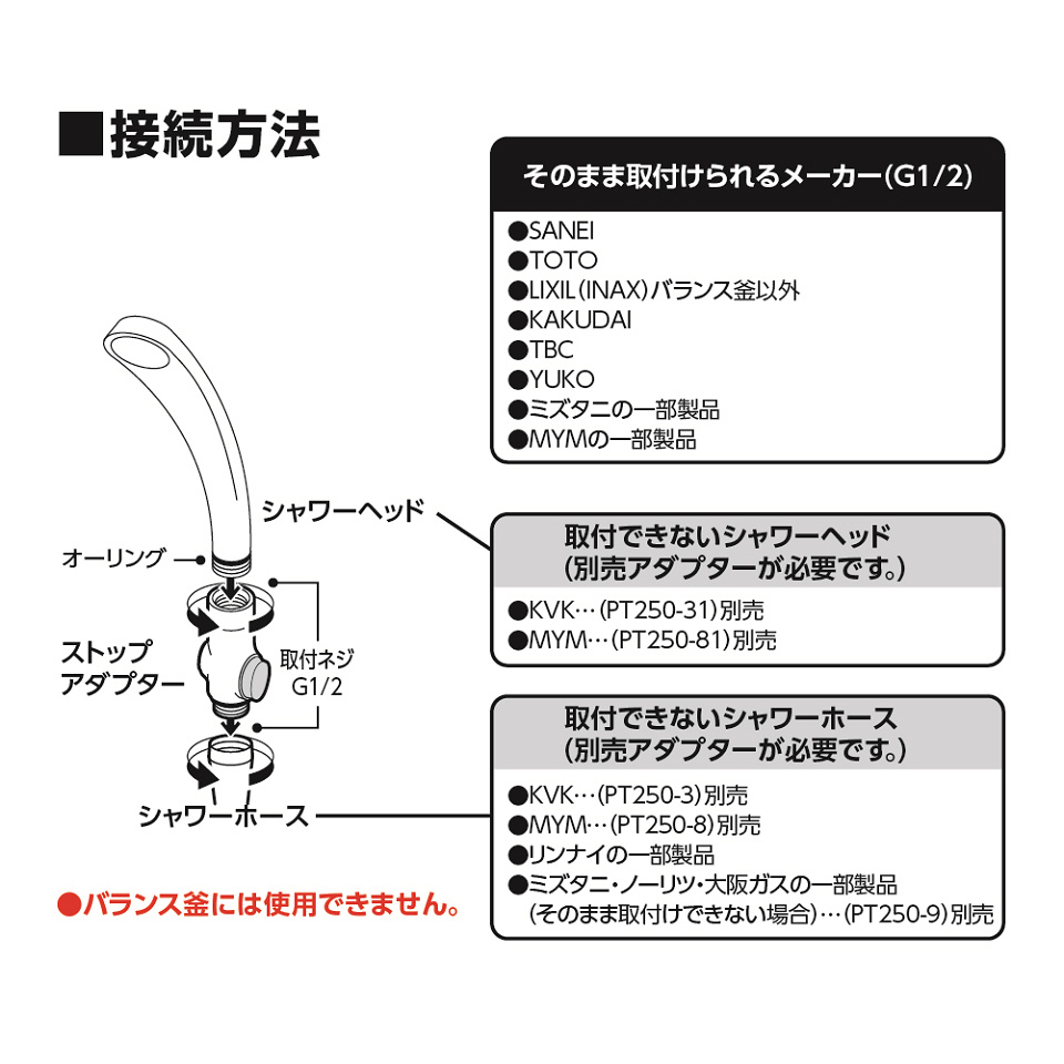 ・逆流防止機構(逆止弁)の付いていない混合栓には使用できません。
