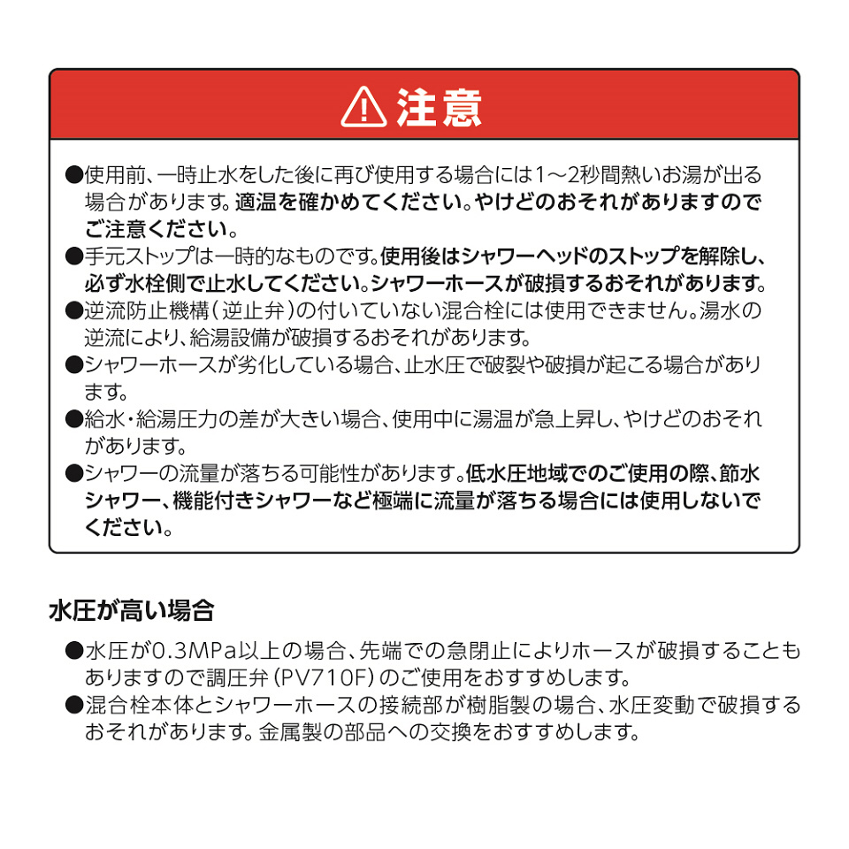 ・水圧が0.3MPa以上の場合、調圧弁を使用する必要があります。