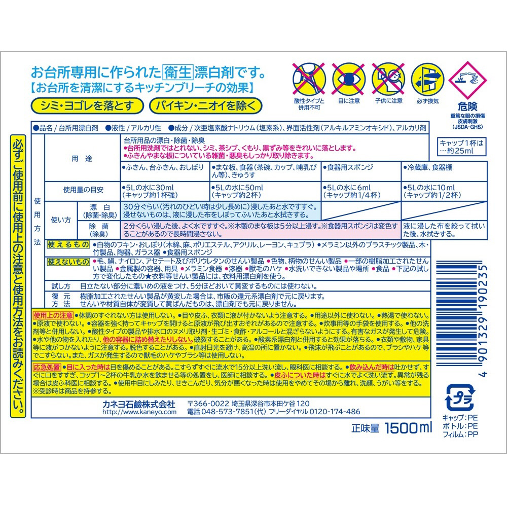 | 商品名 | カネヨキッチンブリーチ(L) 1500mL |