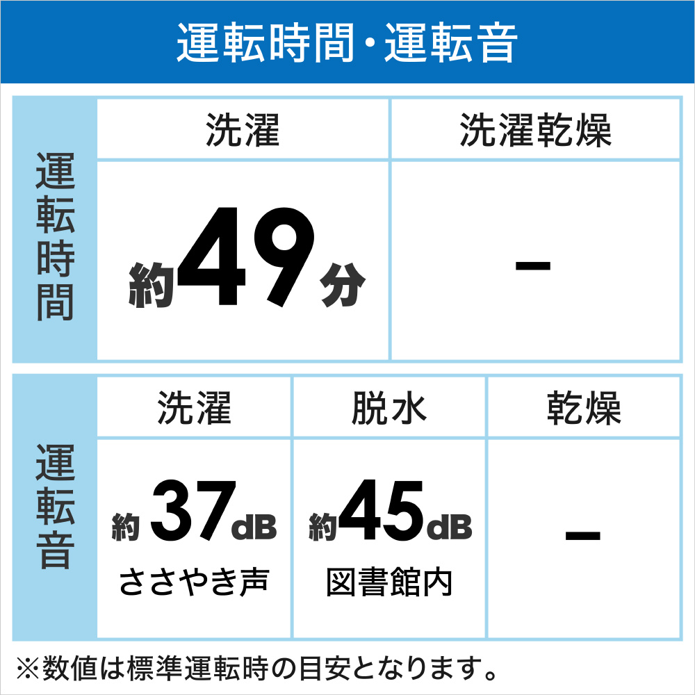 | 運転時間[洗濯時] | 約49分 |