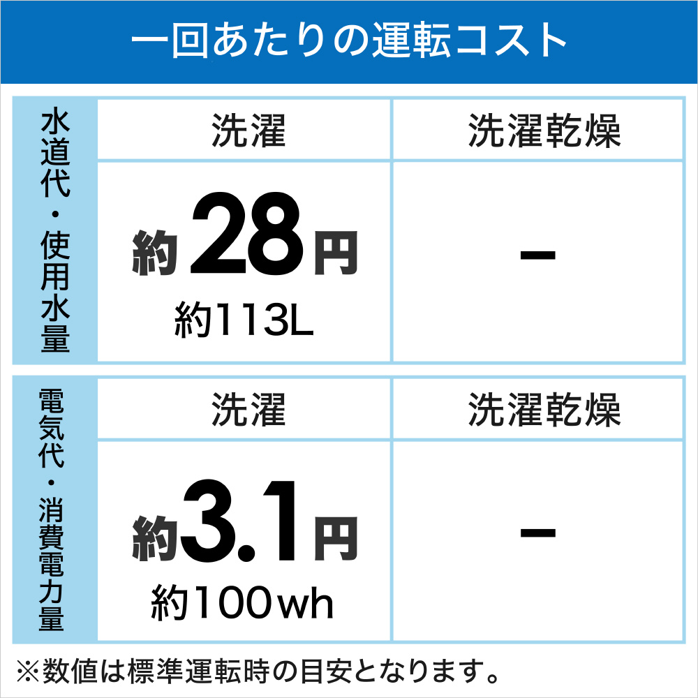 | 標準使用水量[洗濯時] | 約113L |