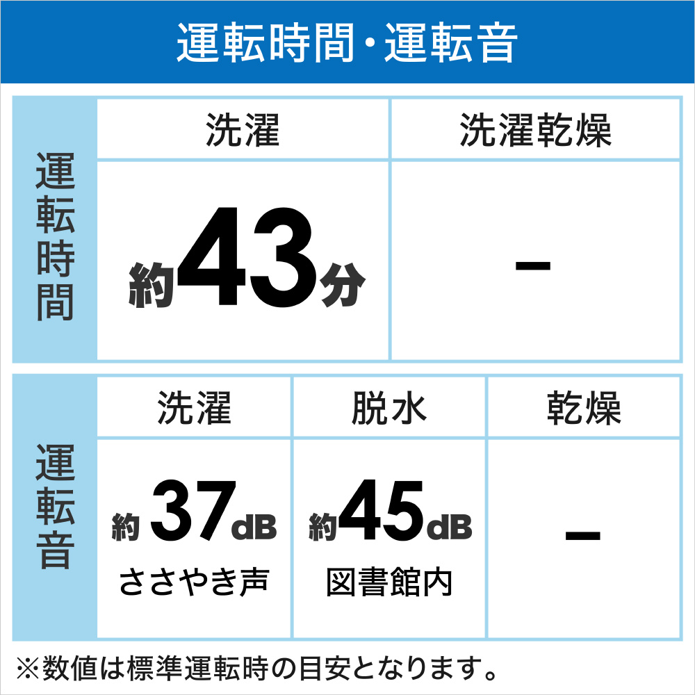 | 運転時間[洗濯時] | 約43分 |