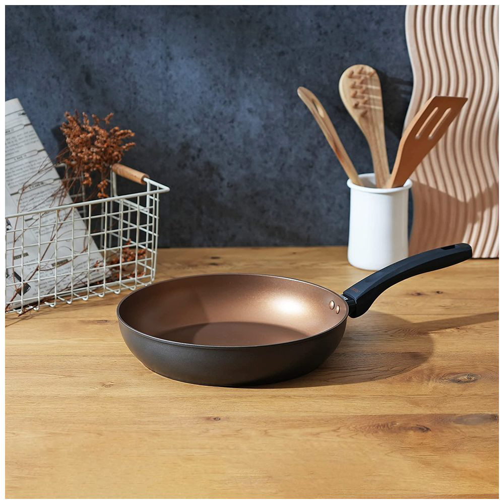 VISIONS GOLD Coat IH対応フライパン28cm(ブラック)。優れた耐久性と熱伝導性を備え、焦げ付きにくい3層コーティング。金属ヘラ使用可能(角の丸いもの)。おしゃれなデザインで、毎日使いたくなるフライパンです。