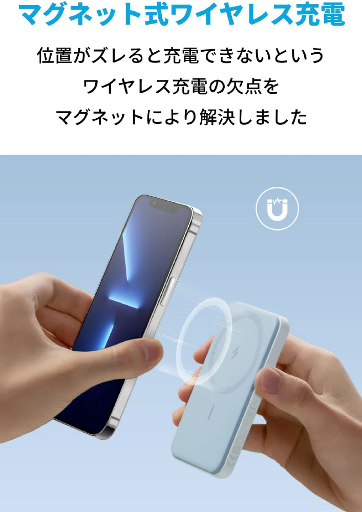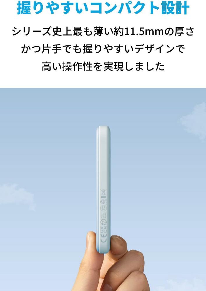 強力マグネットでピタッとくっつく。シリーズ史上最も薄い、マグネット式ワイヤレス充電対応モバイルバッテリー