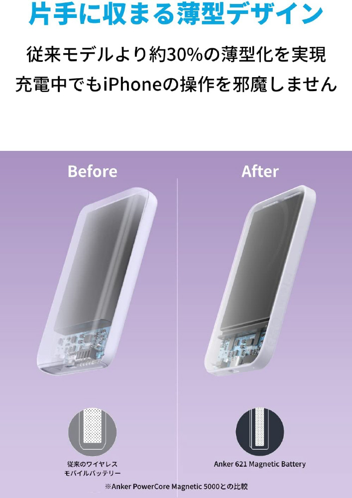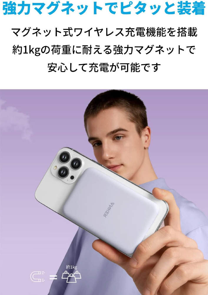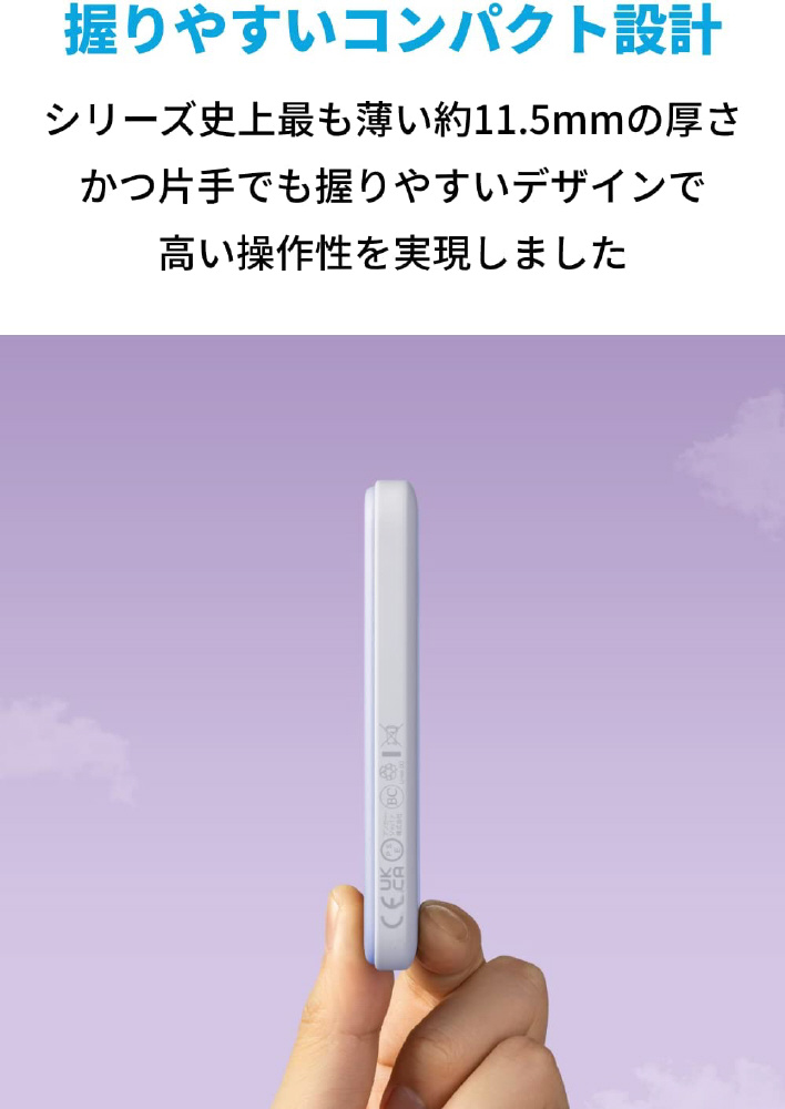 強力マグネットでピタッとくっつく。シリーズ史上最も薄い、マグネット式ワイヤレス充電対応モバイルバッテリー