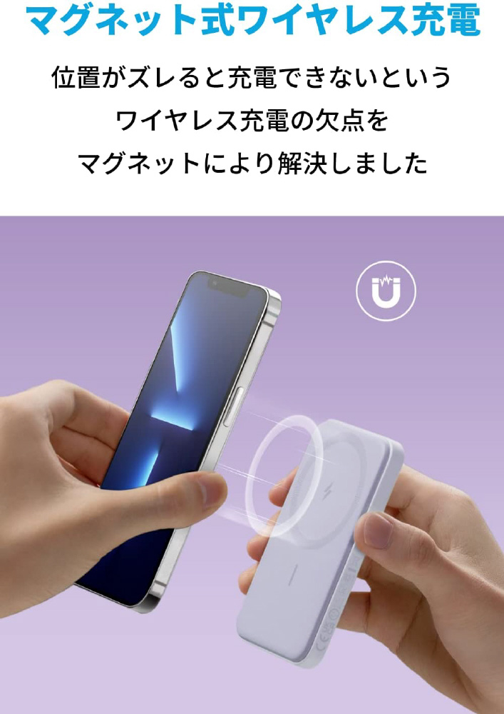 モバイルバッテリー 621 Magnetic Battery (MagGo) 5000mAh 付属ケーブル長: 0.6m ヴァイオレット A16100V2 [1ポート]