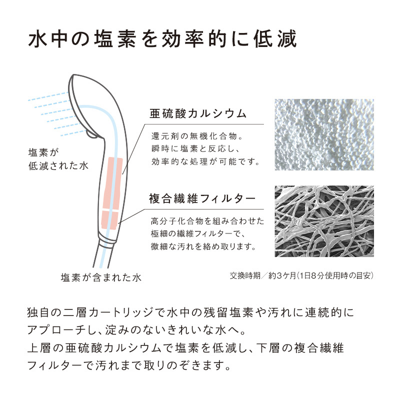 水中の塩素を効率的に低減