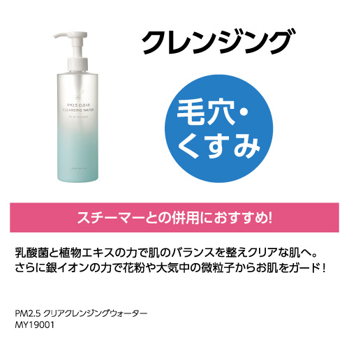 美顔器スチーマー「フォトケア」と「PM2.5 クリアクレンジングウォーター」の数量限定コフレセットです。