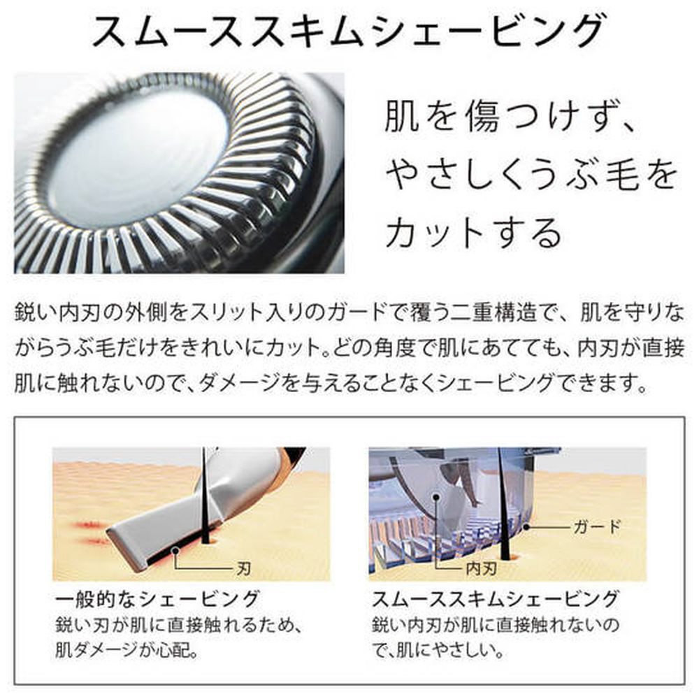 うぶ毛を吸い込むようにしてカットするシェービング技術「スムーススキムシェービング」が実現しました。