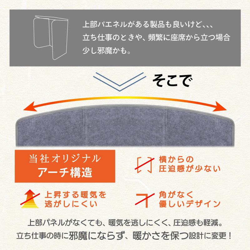■脚にしっかりフィットするので、無駄な隙間をなくし上昇する暖気を逃がしにくい設計。