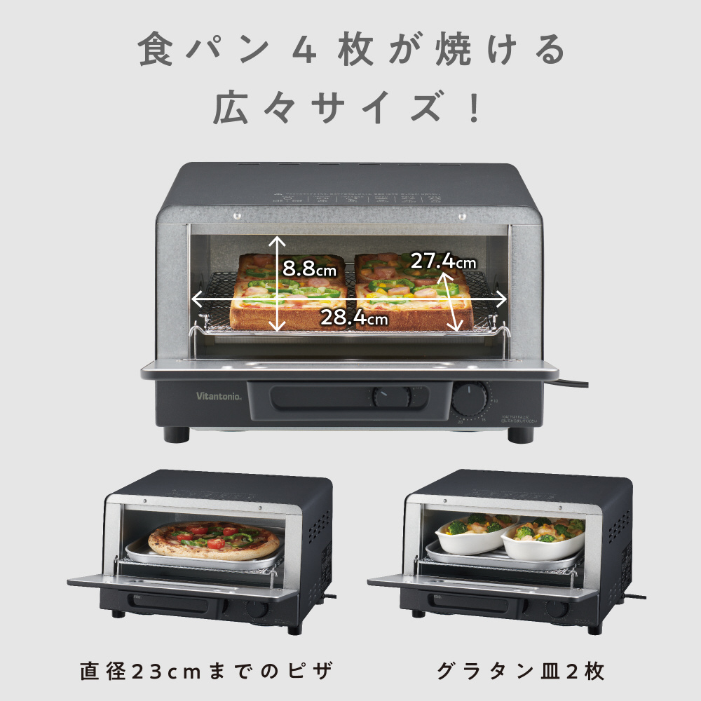 トーストなら4枚、23cmのピザなら1度に焼ける。