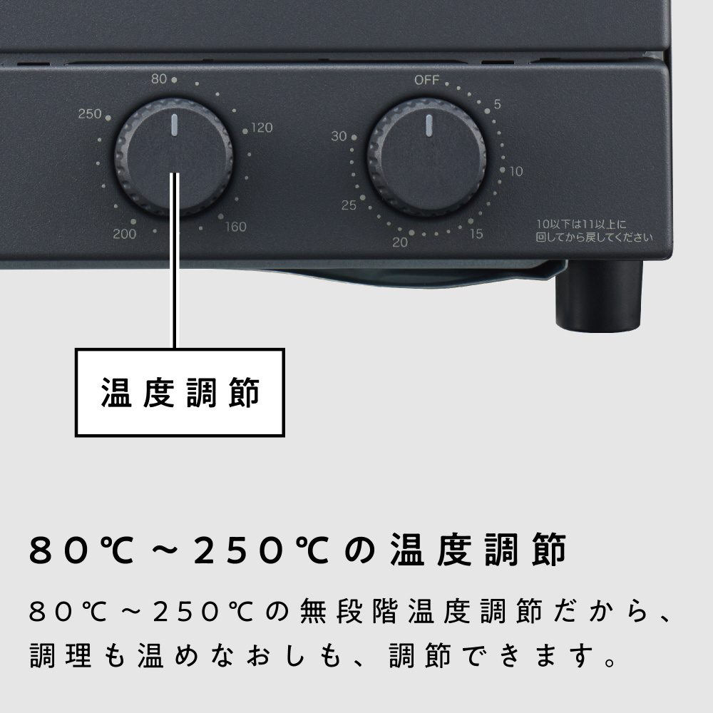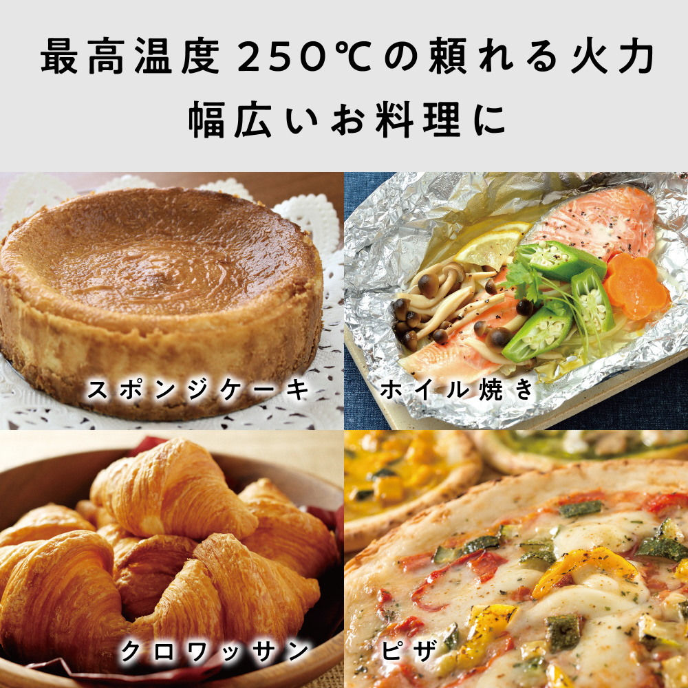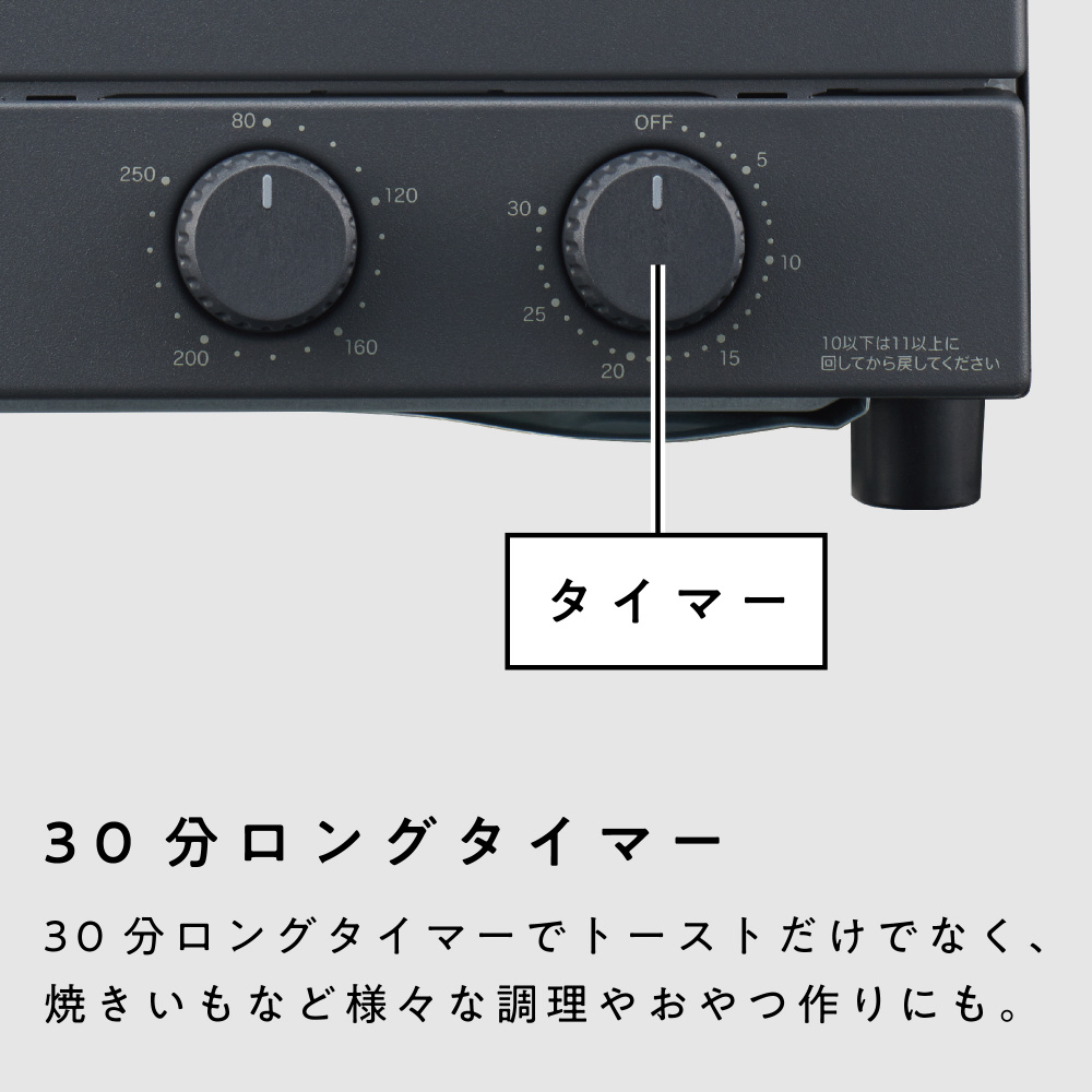 幅広い温調と30分タイマーで、お菓子つくりからグラタンまで様々な用途に使える。