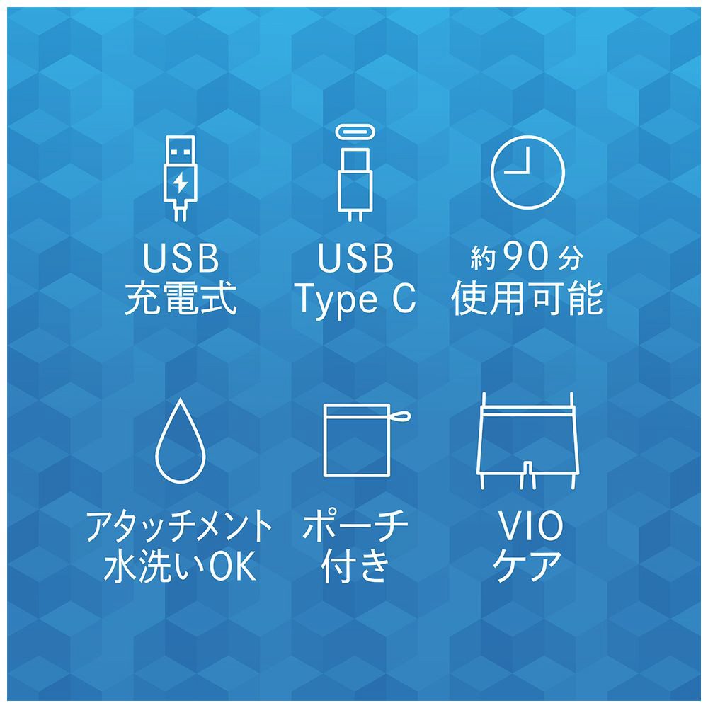 ・付属品: スキ刈りコーム、USBケーブル(50cm)、掃除用ブラシ、ポーチ