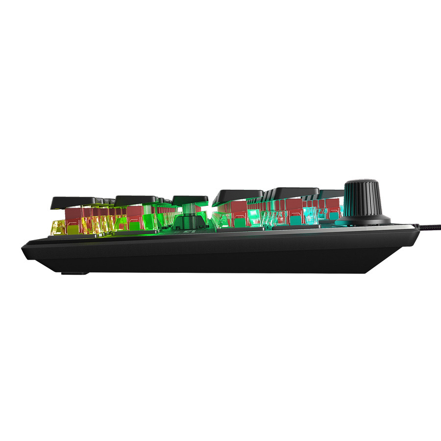 受賞歴を持つ ROCCAT Vulcan メカニカルゲーミングキーボードがテンキーレスのフォームファクターとなり、ROCCAT の Titan Switch Optical の導入によりさらなる高みへと到達。このスイッチは驚異的な光学技術によって生まれ、超高速のアクチュエーションと、かつてないほどの反応性を実現。