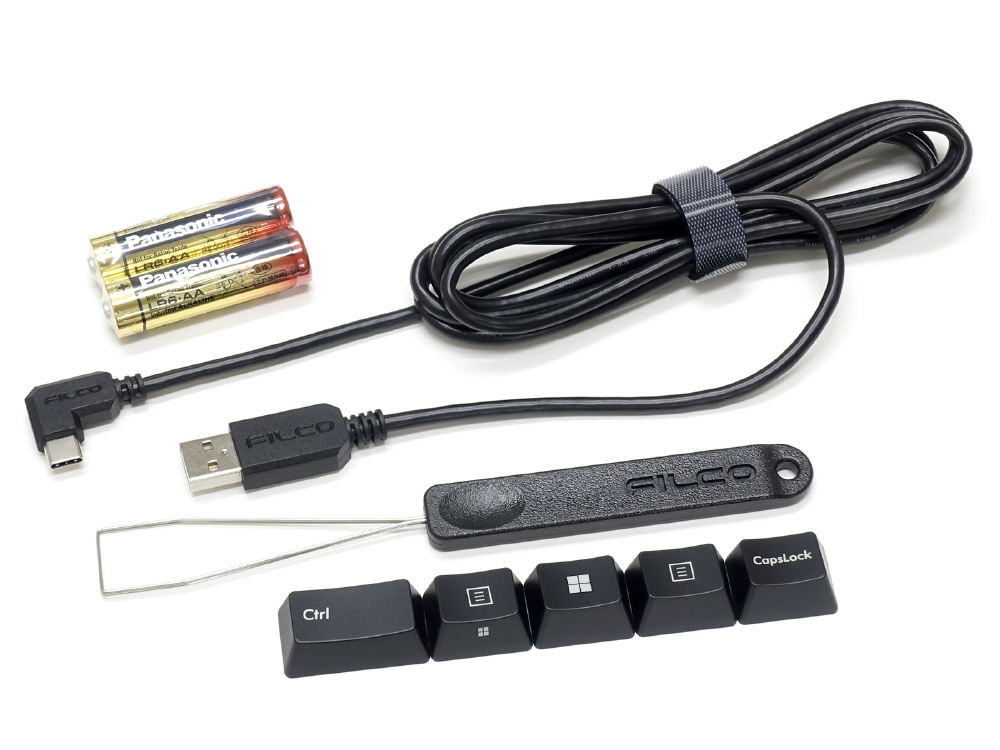 キーコードを変更した際に使用する、交換用キーキャップとキープラーを同梱しています。