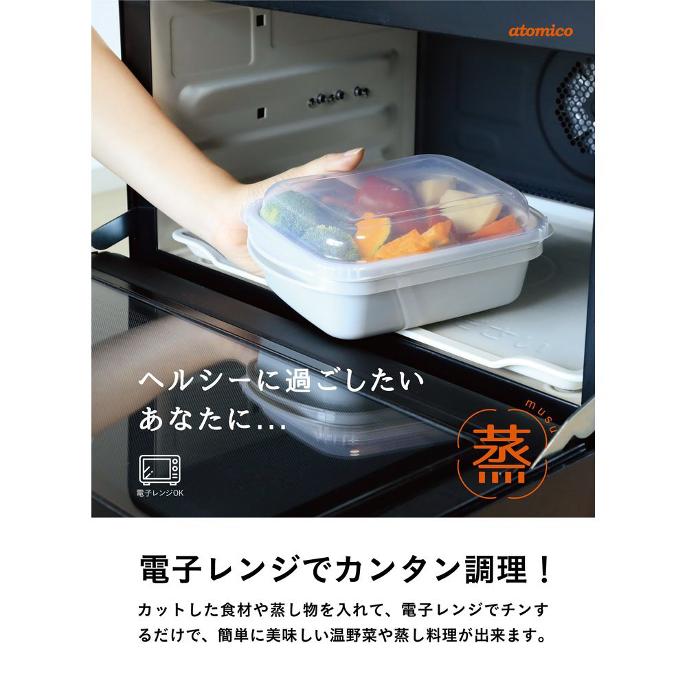 抗菌 レンジでカンタン蒸し調理器 スクエア グレー [約1000ml]