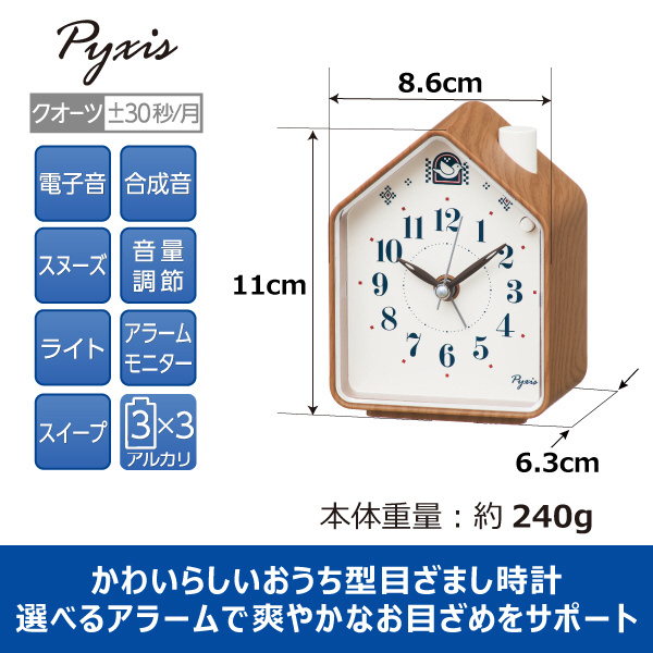 | 商品名 | 目覚まし時計 【ネイチャーサウンド音源】 茶木目 NR453B [アナログ] |