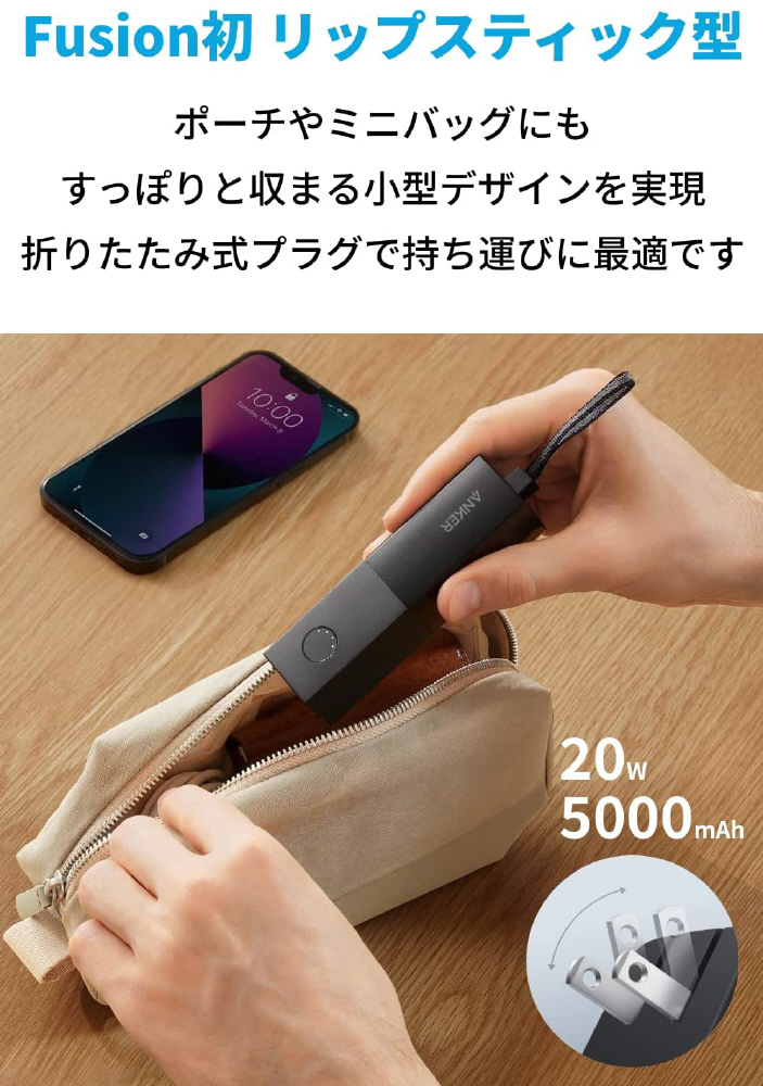 モバイルバッテリー 511 Power Bank(PowerCore Fusion 5000) 5000mAh ケーブル同梱無 ブラック A1633N13 [USB Power Delivery対応 /1ポート] 【sof001】