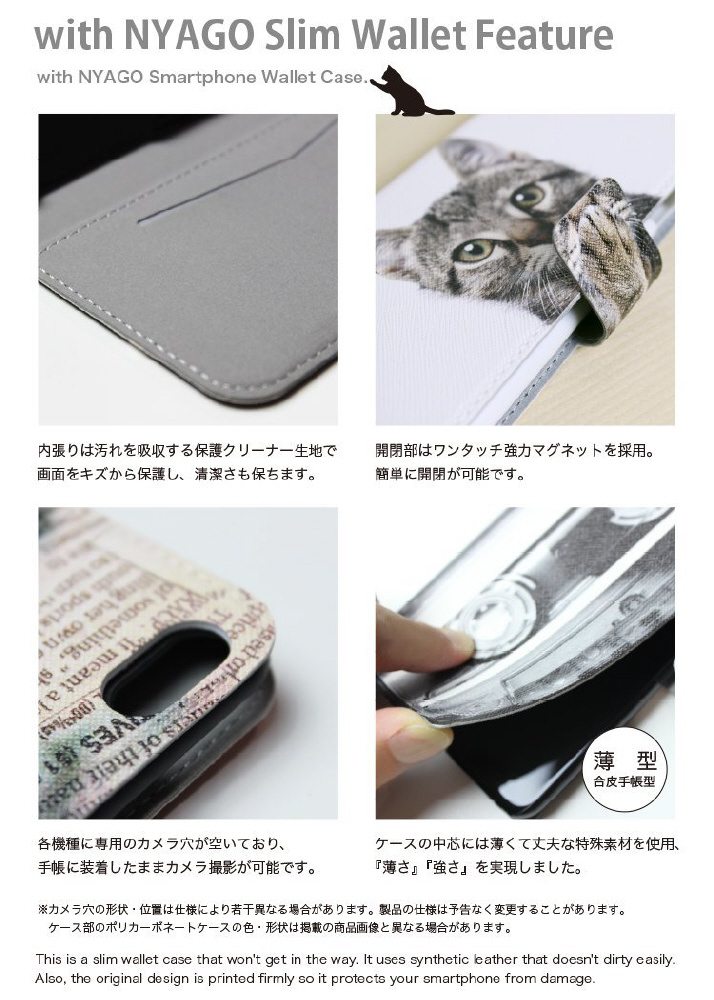 with NYAGOはお洒落でかわいい人気の猫デザインブランド。かさばらないスリム手帳型ケース。