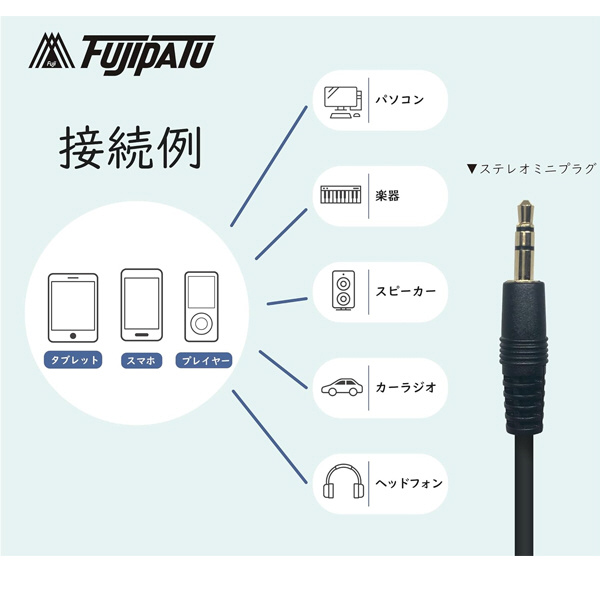 対応機種:ポータブル音楽プレーヤー / カーオーディオのAUX端子 / ICレコーダー / ポータブルスピーカー / Bluetoothレシーバー等