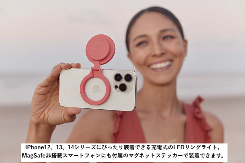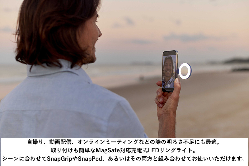 SnapLight MagSafe対応LEDリングライト 4段階光量調節可能 角度調節可能 MagSafe非搭載スマホ用マグネットステッカー付属