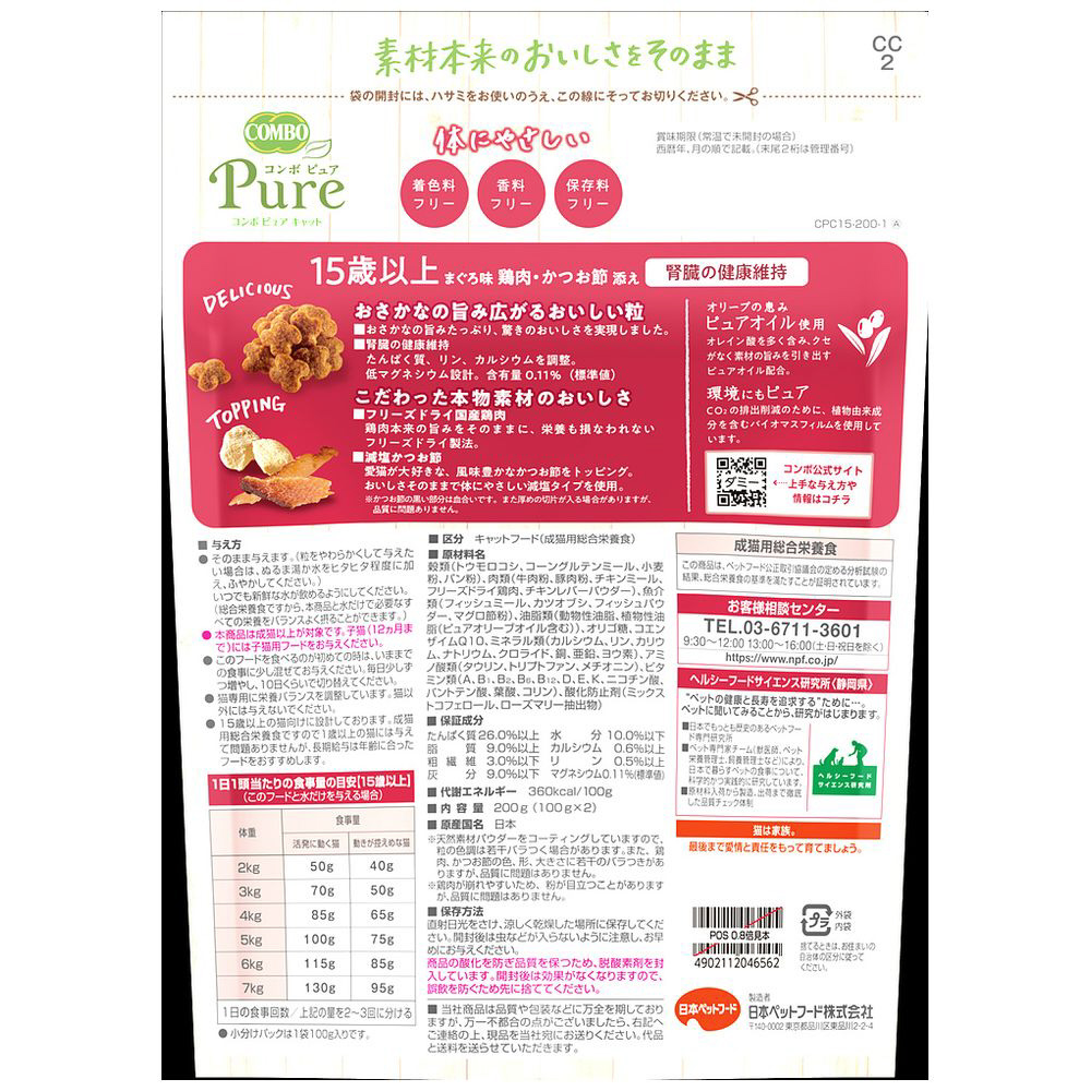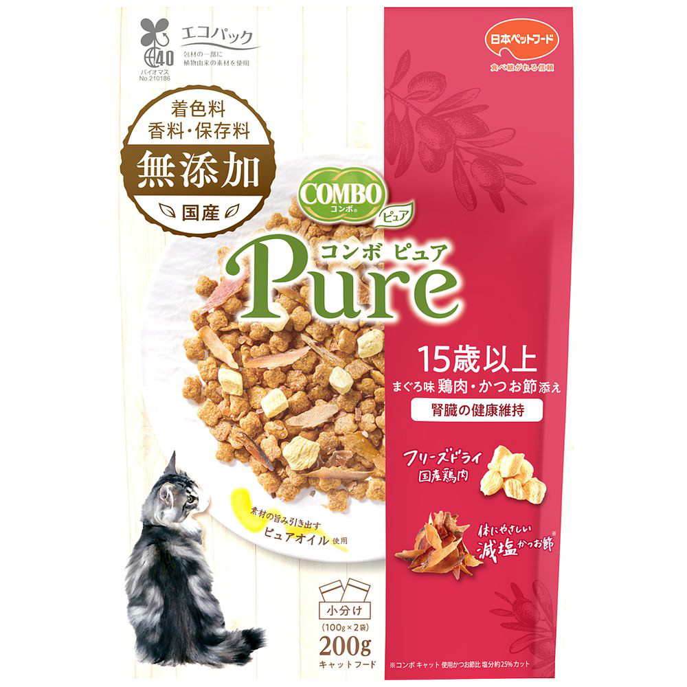 コンボ ピュア キャット 15歳以上用 まぐろ味・鶏肉・かつお節添え 200g(100g×2袋入)