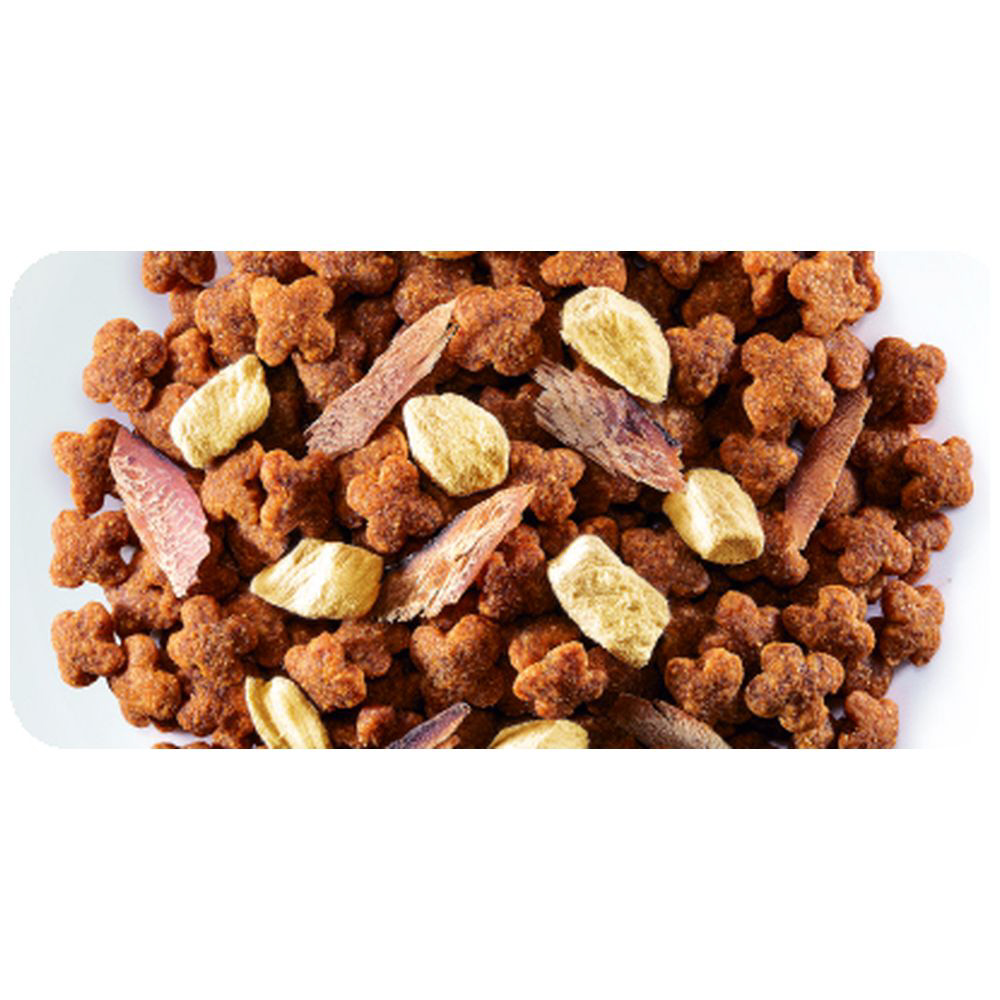 ●素材そのまま、栄養も損なわれない鶏肉フリーズドライと体にやさしい減塩かつお節の本物にこだわり抜いたトッピング。